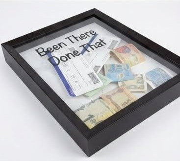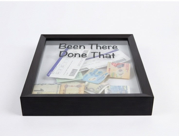 Celebrate your journeys with the Been There, Done That frame box — a modern shadow box designed to preserve your most meaningful travel memories. Featuring a clean black frame and a transparent front, this piece beautifully displays boarding passes, tickets, currency notes, and souvenirs from places you’ve explored.